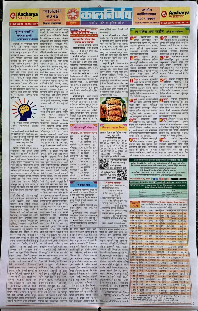 - Kalnirnay Marathi January 2026 Calendar