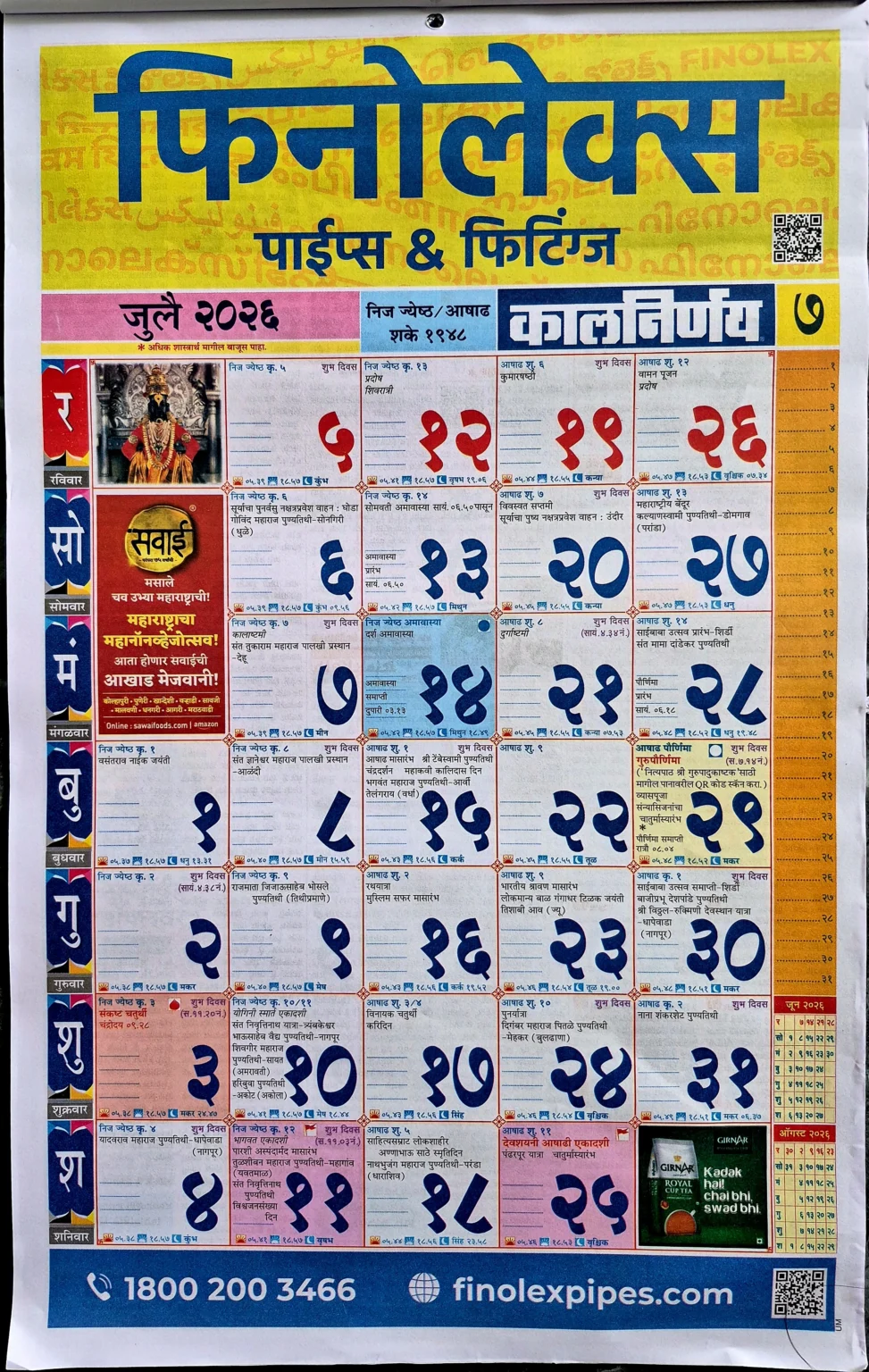 Welcome to Kalnirnay.Org! This is the best website for the Marathi Kalnirnay 2026 July Calendar.